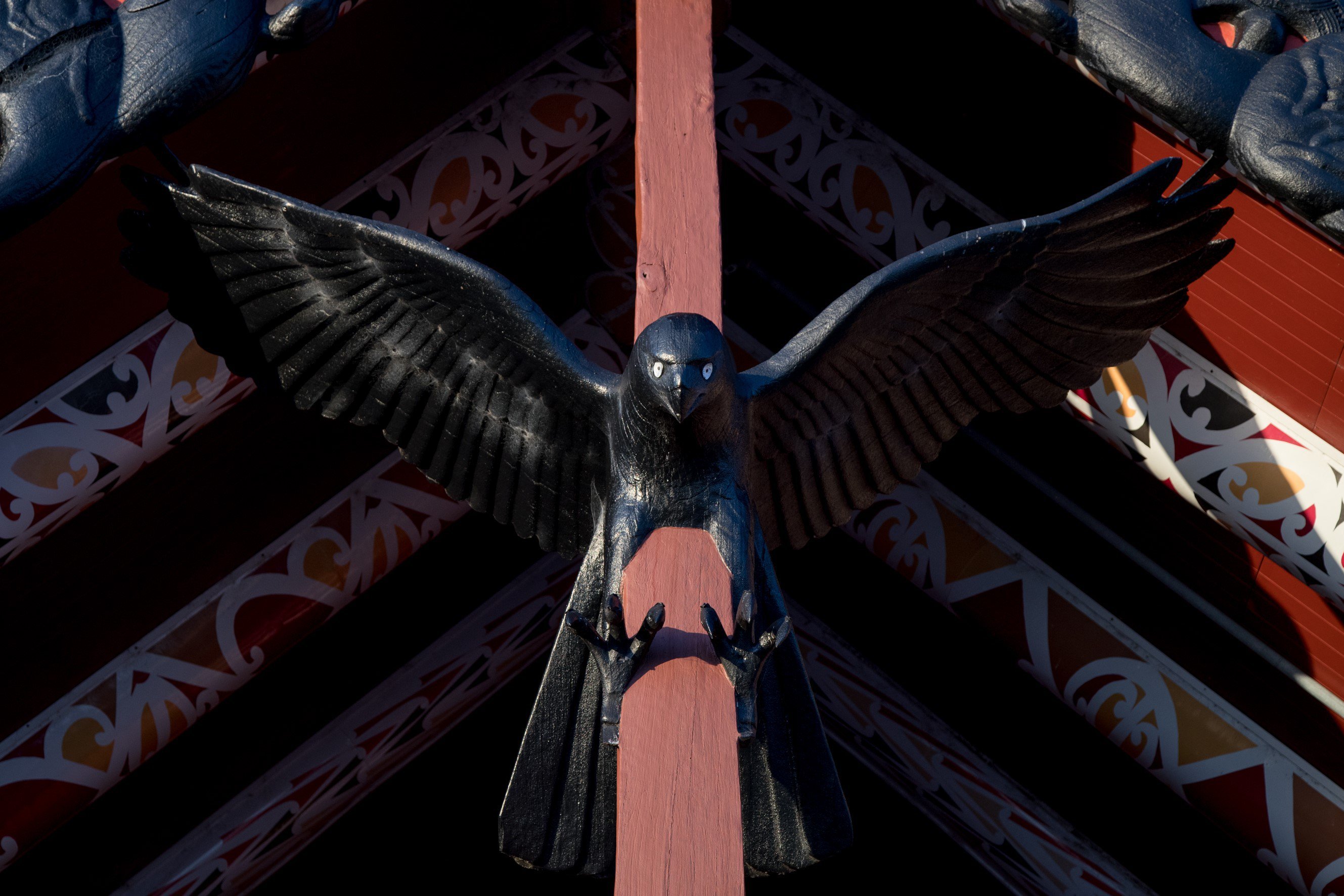 The kāhu pōkere refers to the black harrier hawk, a central figure on the front of our whare tupuna (ancestral house), Tumutumuwhenua. The hawk symbolises care, connection and oversight.